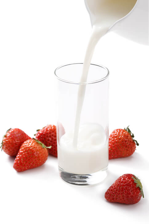 - 믹서기에 딸기와 우유를 넣고 갈아줍니다.