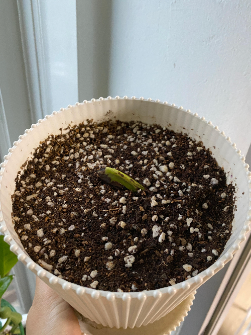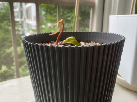 그렇게 뿌리인지 새싹인지 모를 부분을 아래로 가게 두고 심은 화분을 보며 뿌리면 아래로 내릴 것이고 새싹이면 뚫고 올라오겠지! 라며 ㅋㅋㅋ 망고에게 자생력을 기대해보았습니다. 바람이 잘 드는 베란다에 두었고요. 어차피 햇빛이 많이 들지 않는 곳이라 처음부터 강한 직사광선은 피해야 하지만 저는 베란다에 냅다 안착!