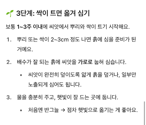 위에는 배수가 잘되는 흙에 씨앗을 가로로 눕혀 심으라고.