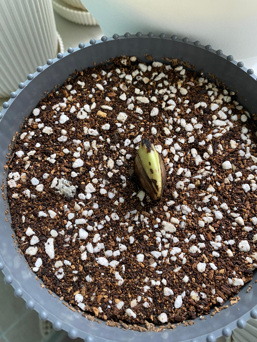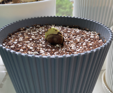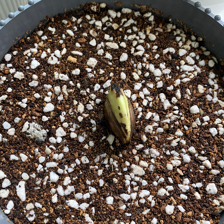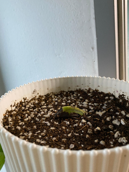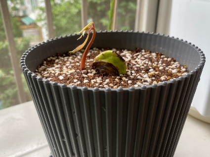 그렇게 뿌리인지 새싹인지 모를 부분을 아래로 가게 두고 심은 화분을 보며 뿌리면 아래로 내릴 것이고 새싹이면 뚫고 올라오겠지! 라며 ㅋㅋㅋ 망고에게 자생력을 기대해보았습니다. 바람이 잘 드는 베란다에 두었고요. 어차피 햇빛이 많이 들지 않는 곳이라 처음부터 강한 직사광선은 피해야 하지만 저는 베란다에 냅다 안착!