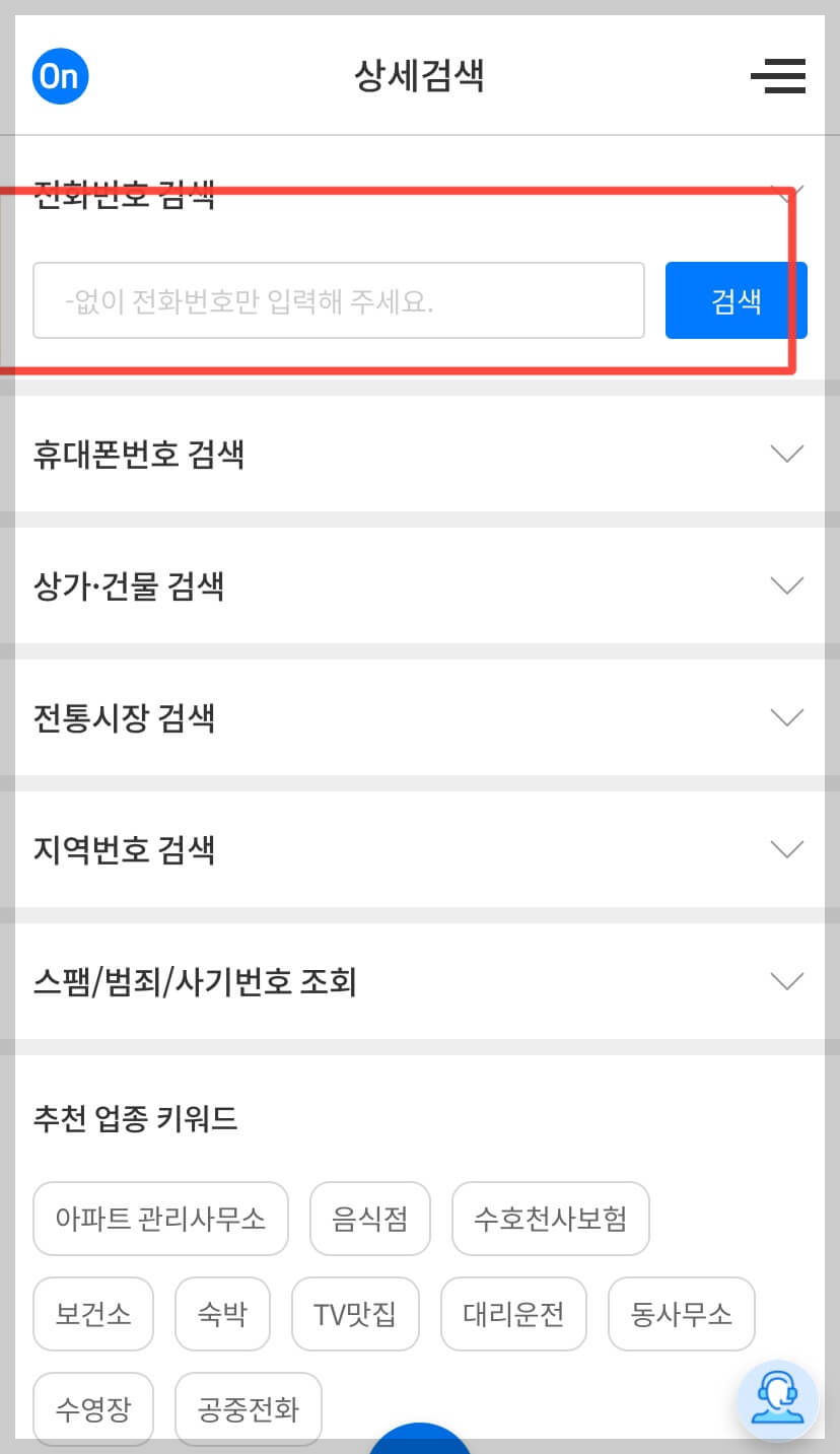 검색으로 전화번호를 확인합니다.