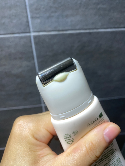 이렇게 크림을 꾹 누르면 괄사 롤러 사이로