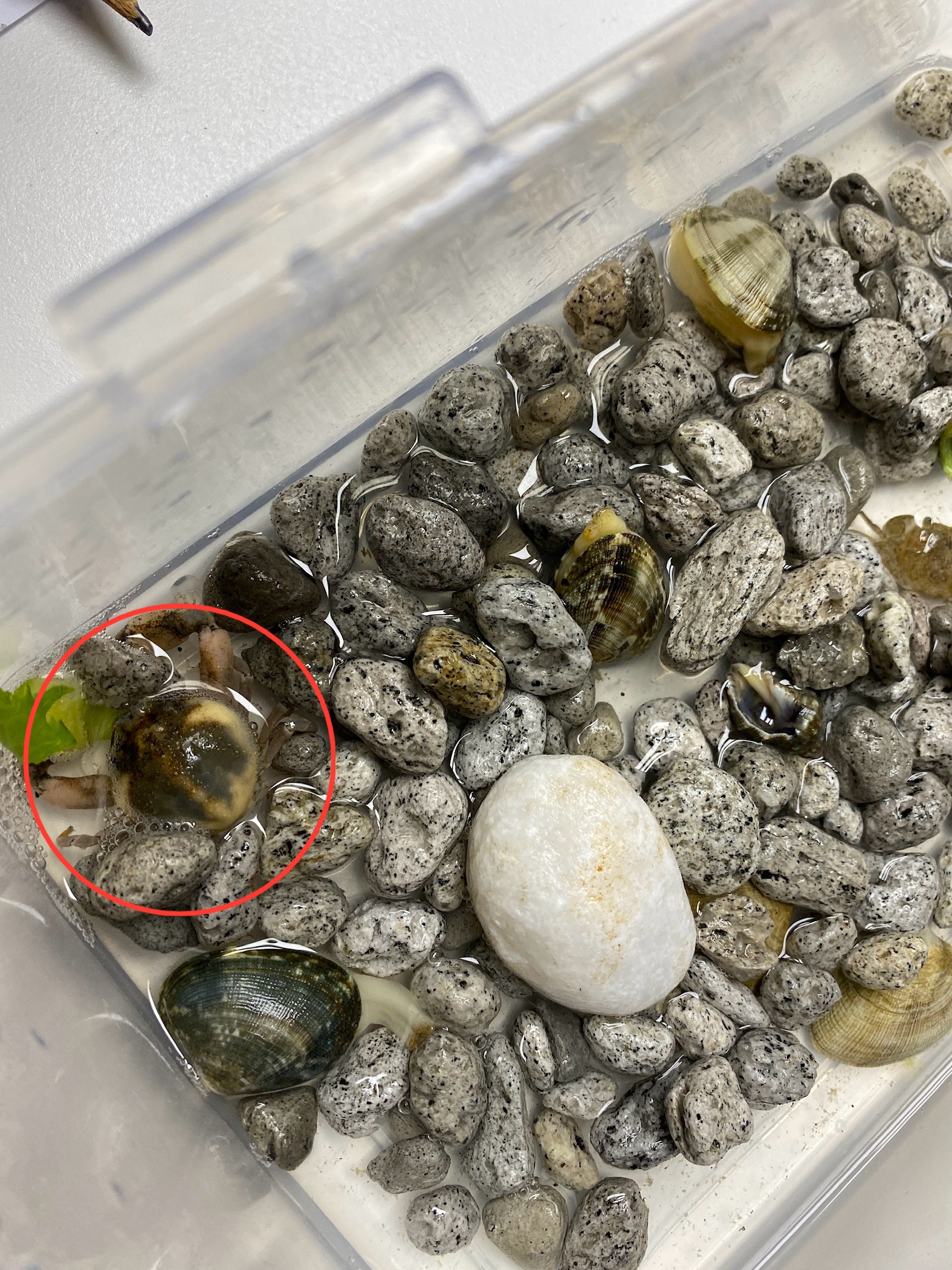 각각 한 마리씩과 잡아온 바지락과 다슬기를