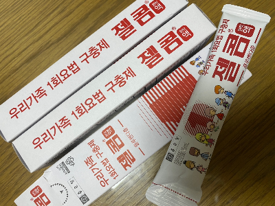 저도 약국에서 구충제를 달라고 말하니 연령대 상관없이 먹을 수 있는 제일 인기 많은 제품이라며 종근당 건강의 <젤콤> 을 주시더라고요. 한 상자에 2포가 들어있어 1 포 먹고 2주 뒤에 다시 1포 마저 먹기로 하였습니다.