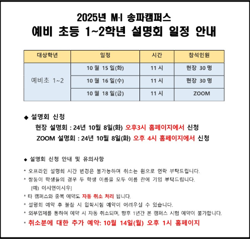 그럼 MI 어학원 송파 캠퍼스 입학설명회, 테스트 신청과 주의사항과 꿀팁 작성해 볼게요.