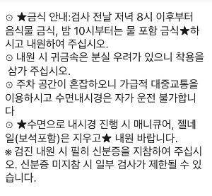 - 검자 전날 저녁 10시 이후부터 물 섭취 금지