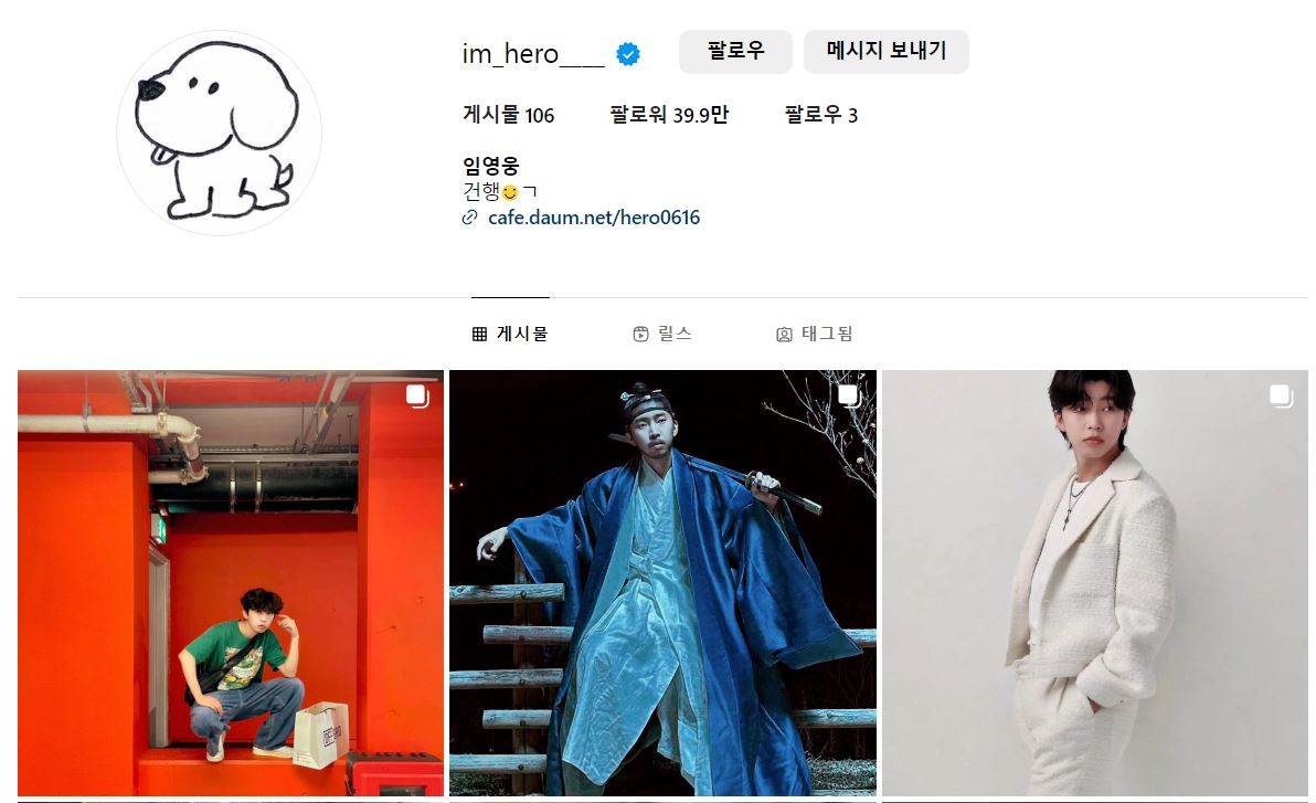 힘들고 지치고 우울한 날에는 효과가 직방인 사람 냄새 폴폴 나는 개인 인스타그램이 있어 다행입니다. 공식 계정이 아닌 임영웅님 개인 인스타그램은 아래 이미지를 통해 이동하실 수 있습니다.