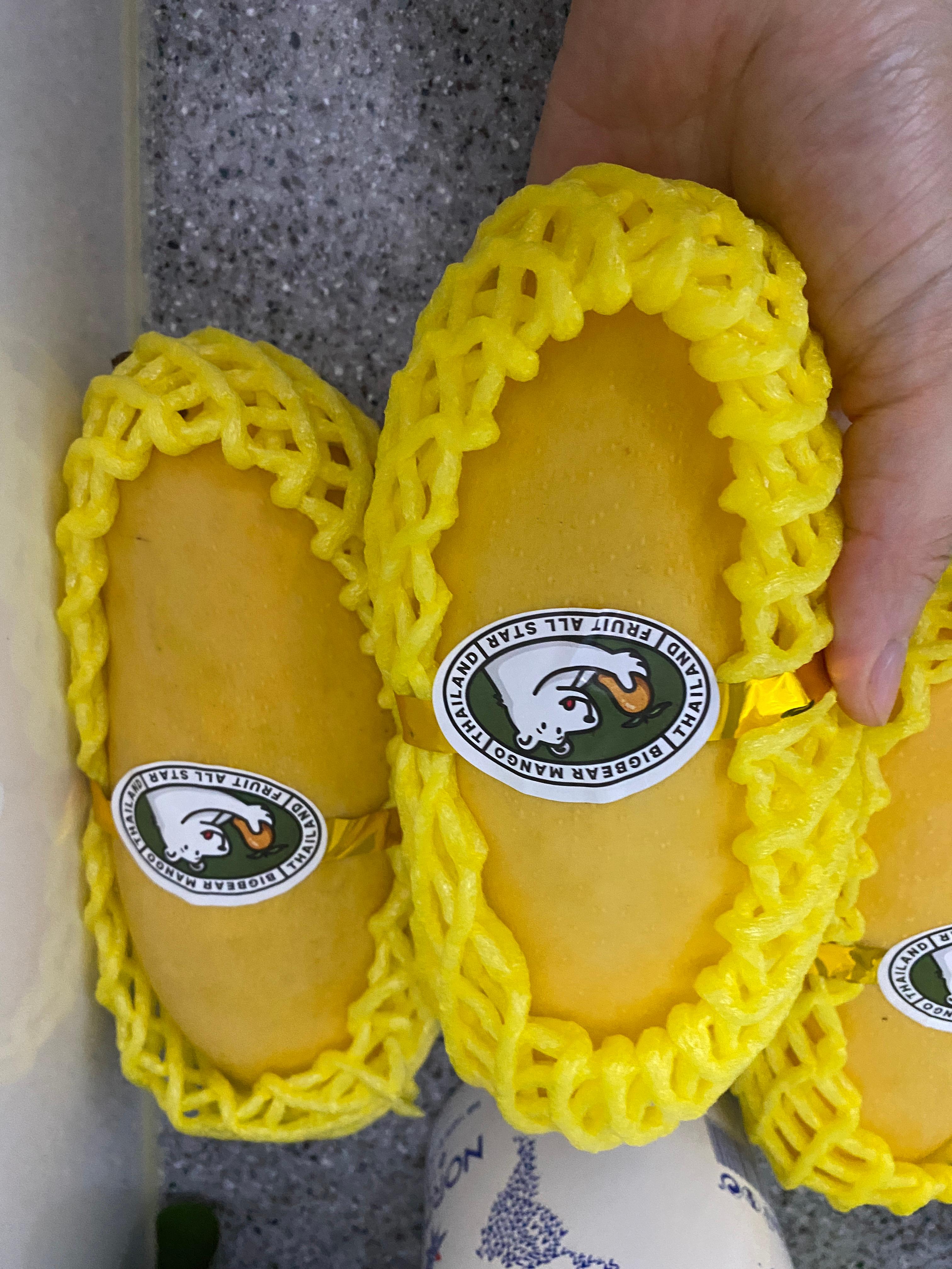 그냥 마트에 흔히 보이는 노랑색 망고였어요. 칼립소 또는 알폰소라 불리는 망고의 종류인 것 같은데요. 노랗고 길쭉한 노란색을 띠는 평범하디 평범한 망고를 구매했습니다.