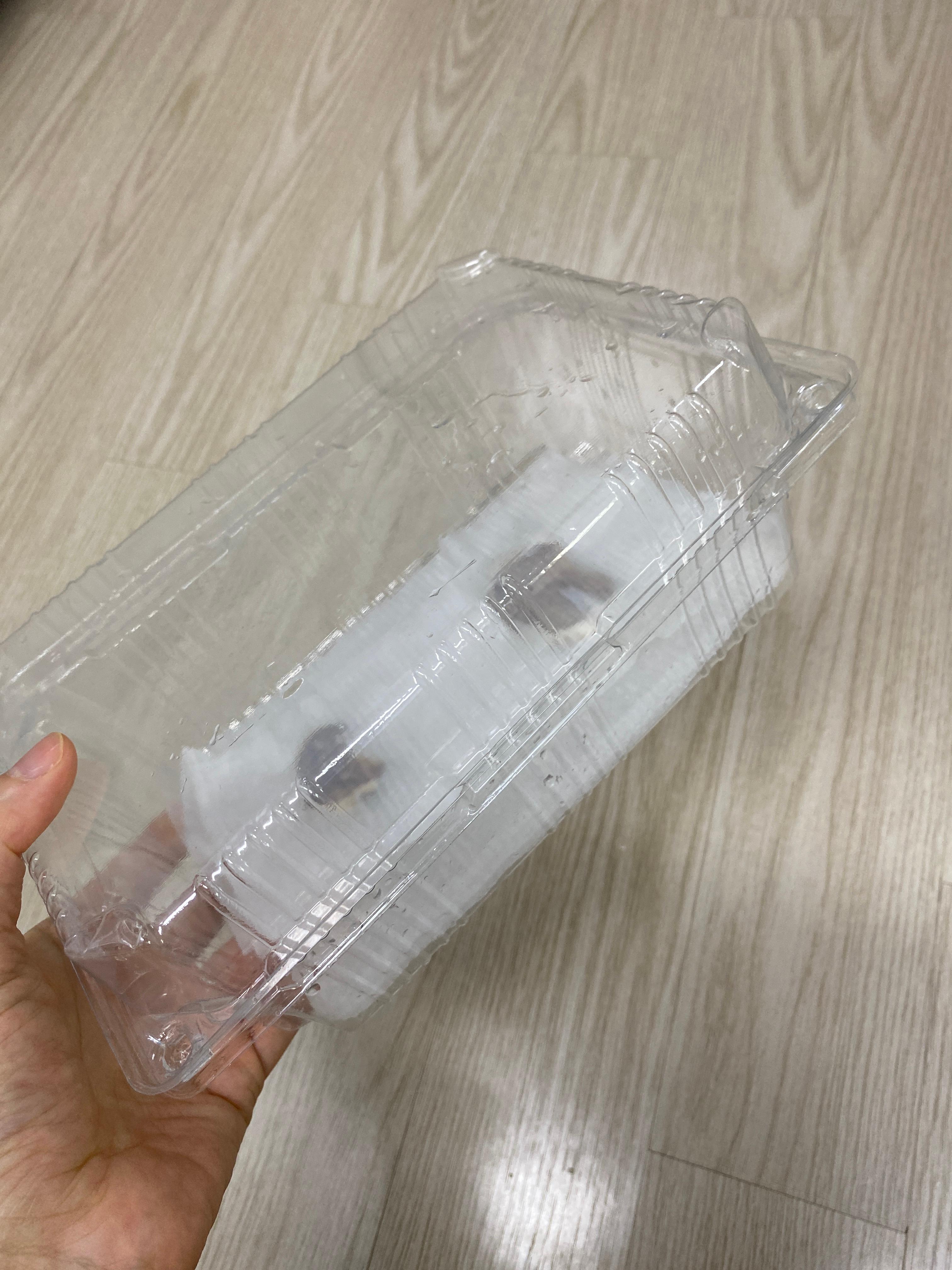 발아시키는 방법은 뼈대에서 세상 빛을 보게 해 준 씨앗을 소중하게 키친타월로 감싸주라고 합니다. 축축하고 따듯한 환경에서 발아가 잘되는 것은 만물의 법칙! 알려주신 대로 즉각 시행하려고 했으나. 지퍼백에 밀봉을 하면 곰팡이라 생길 것 같은 느낌적인 느낌으로... 주위를 둘러보다 방울토마토가 몇 알 남지 않은 플라스틱 통이 보입니다.