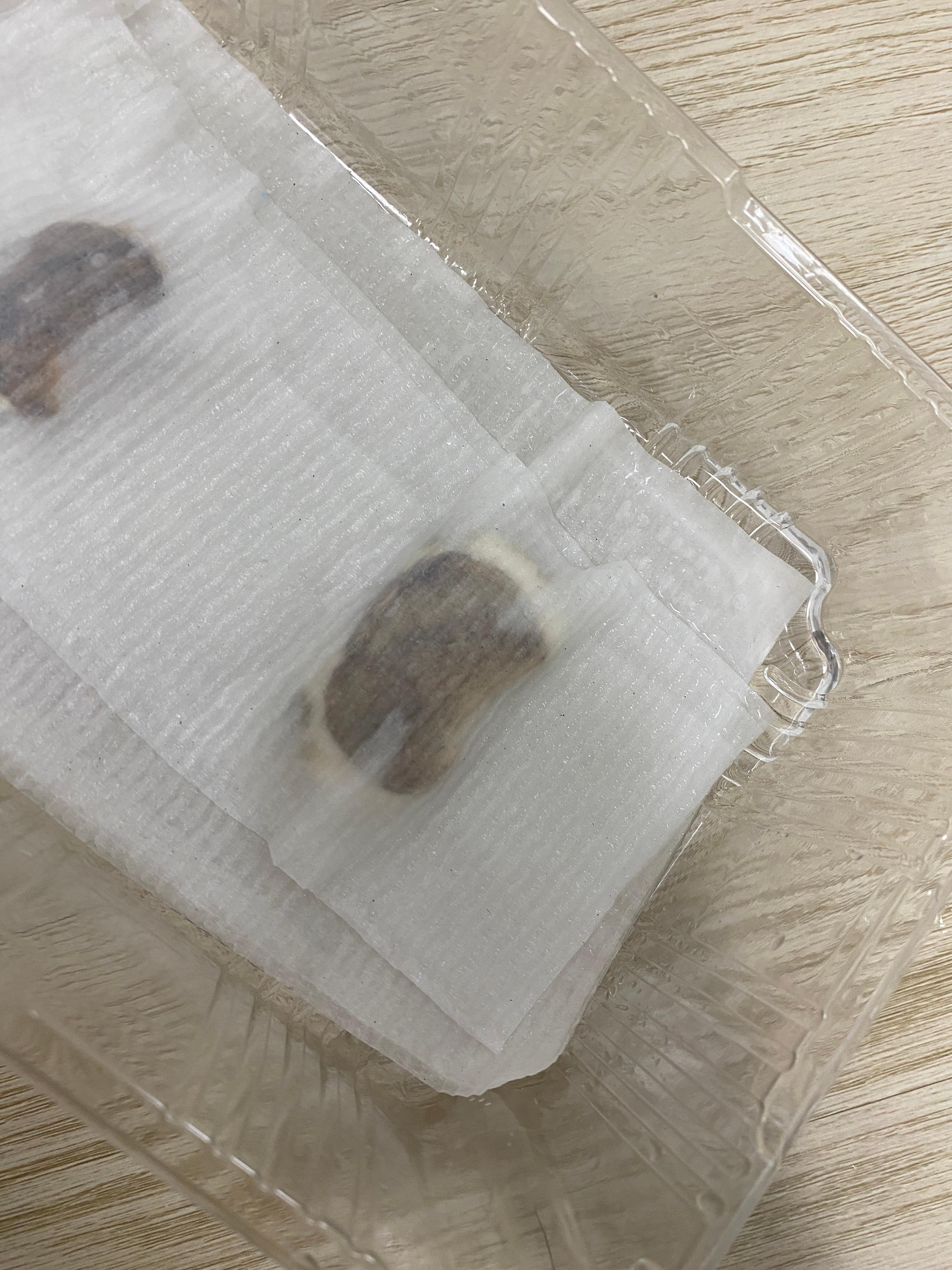 실제로 하루가 지나면 점액질 같은 것이 키친타올에 묻어나면서 오염이 되어있어요. 기분이 매우 별로지만 살짝 끈적해진 키친타월을 버리고 새롭게 요를 깔고 물을 살짝 부어주고 다시 이불을 덮어줍니다.