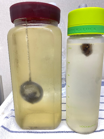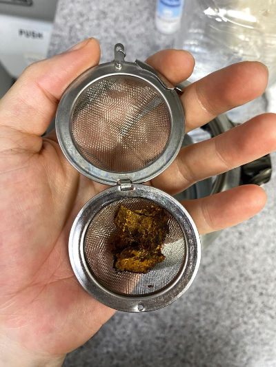 50 정도가 되었을 때 버섯 한 덩이를 넣어줍니다. 진한색이 우러나면 마셔주는 거죠