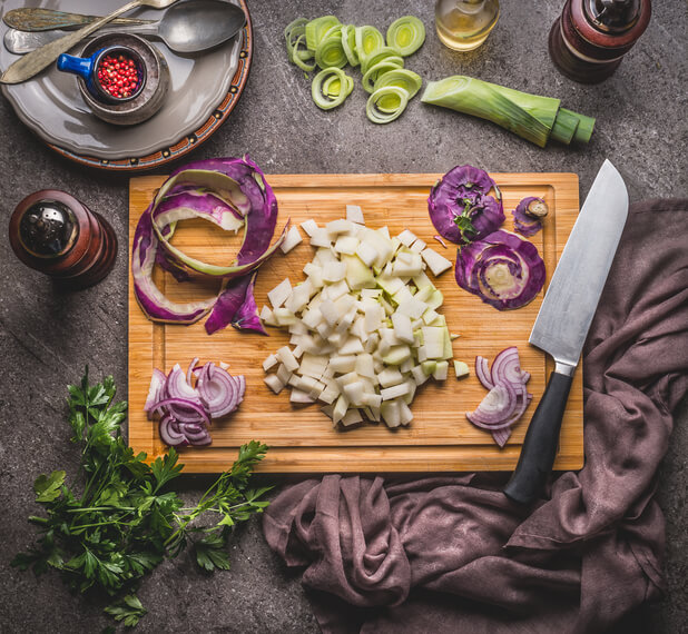 - 껍질을 제거한 콜라비를 먹기 좋은 깍두기 모양으로 썰어줍니다. 이가 약한 가족이나 어린이가 있다면 조금 얇게 썰어주시는 것을 추천합니다.