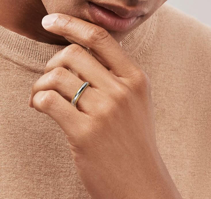 가장 많이 하시는 제품은 심플함에 조금은 화려함을 더한 디자인입니다. 실버바디에 골드가 양쪽 라인으로 얇게 들어가 있어 피부톤을 크게 타지 않고 심플함에 화려함 한 스푼의 느낌입니다. 남녀 착용샷이 다 잘 어울려 공용제품으로 너와 나 똑같이! 너무 예쁘네요.