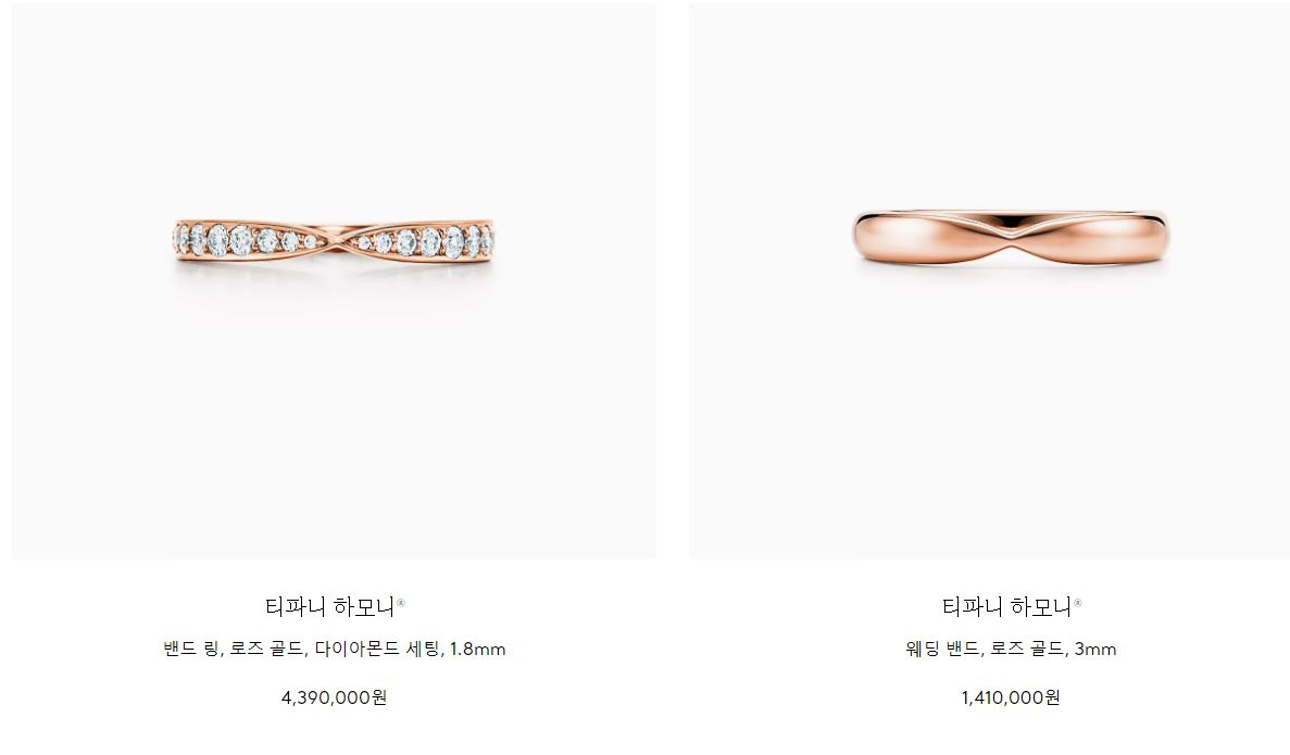 오늘은 결혼을 앞둔 분들을 위한 티파니의 가장 유명한 웨딩밴드 밀그레인과 더 나아가 하모니라는 귀여운 반비를 소개해드렸는데요. 커플링으로도 손색없는 로고 딱 박힌 귀염귀염한 반지까지. 티파니앤코는 반지 선택의 폭이 넓어서 좋은 것 같아요.